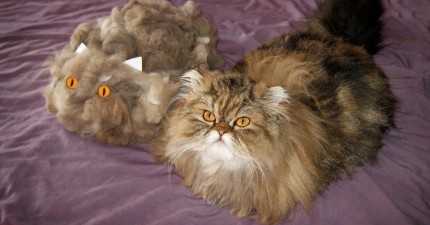 這13個主人梳貓咪梳到一半,發現到旁邊梳出了另一隻貓咪!