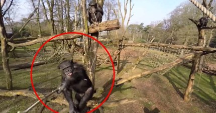 這台無人飛機潛入黑猩猩領土偷拍,但幾秒內拍到的畫面讓很多人都大吃一驚!