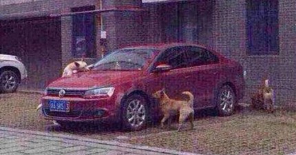 這名男子因為不爽而踢了狗狗一腳,結果狗狗找了他的同伴回到被欺負的地方…
