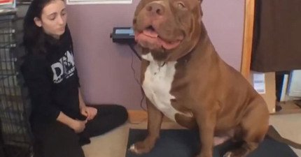 這隻世界上最巨大的比特犬體重直逼80公斤。當他站起來的時候…我都要貧血頭暈了!