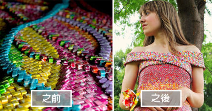 她花了4年的時間跟超過1萬張糖果紙做出「夢幻禮服」!背後的「爆美彩虹」設計會讓人砸錢!