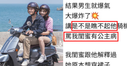 問曖昧男生「開車還騎車」被罵公主病 網友一面倒:她沒錯