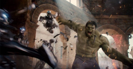 最新釋出《復仇者聯盟》預告,巨型鋼鐵人跟浩克互毆到大樓都要炸掉了。