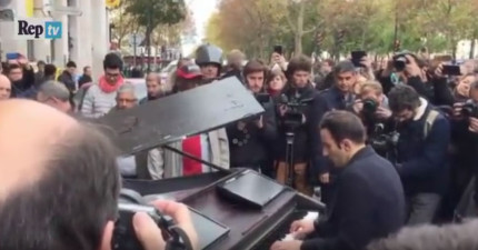 這名男子騎單車到巴塔克蘭音樂廳發生恐怖攻擊事件的地方然後坐在鋼琴前面,接著旁邊的民眾都開始哭了…