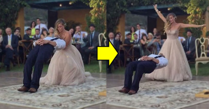 這對新人正在婚禮跳第一支舞,結果新郎「突然漂浮在空中」把現場親友全都嚇傻了!