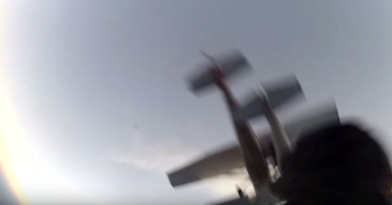 他們正要跳傘時,就在38秒時另一架飛機撞上把他們給推出了飛機外…