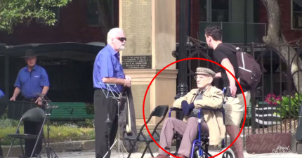 跳舞高手打扮成坐在輪椅裡的老爺爺,結果當路人來幫忙推的時候…