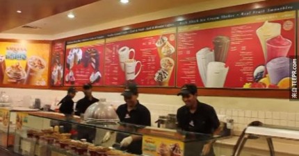 這家冰淇淋為了要打敗競爭對手,只要客人點餐都會做這個表演。