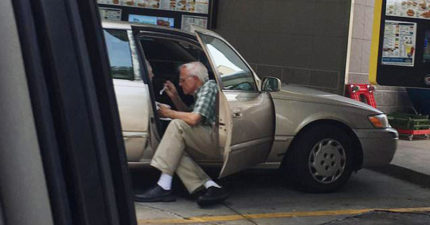 37度烈日老爺爺「買冰淇淋卻不吃」縮在車門邊餵「她」,車內一看88萬網友視線瞬間模糊…