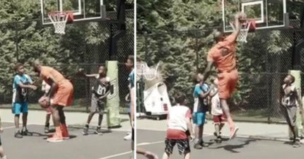 「詹皇」幫10歲兒辦慶生運動會,一點不放水「殺爆猛灌籃」小孩完全崩潰…(影片)