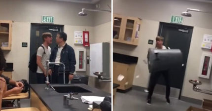 美國高中生被拍到飆罵台裔教師「你這XX」種族歧視,最後還拿起垃圾桶! (影片)