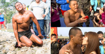 血汗蛙人搏命爬「50公尺天堂路」跪下掏鑽戒,噴淚求婚:「妳是我最愛的女人!」