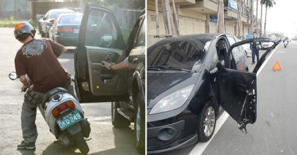 超狂三寶嬤亂開車門「撞飛騎士」還狠嗆「趕快死一死」,「一看監視器後」態度180度大轉彎!