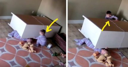 雙胞胎兄弟「慘遭櫃子壓倒」嚴重生命危險,2歲淡定男童「化身浩克」完美救援!(影片)