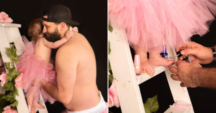 单亲爸「穿粉红澎裙」陪女儿拍照 顶「超Man大胡子」暖喊:为她我愿意!