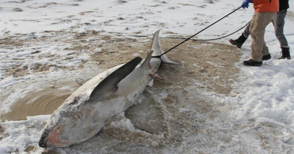 數隻「鯊魚冰塊」被沖上岸!保育團體花4小時在沙灘上撿遺骸…