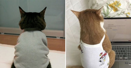 喵星人「穿襯衫發呆照」爆紅 露出「超肥美背影」像貓界大叔!