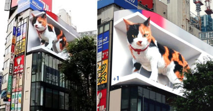 影/超巨大貓咪站在大樓上!愛睏「差點掉下來」路人嚇傻