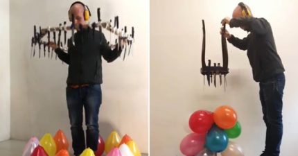 藝術家用「各種道具戳氣球」 「超腦洞方法」網讚爆:太療癒!