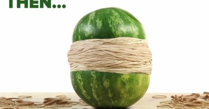 要用幾個橡皮筋才能把一顆西瓜給擠爆?