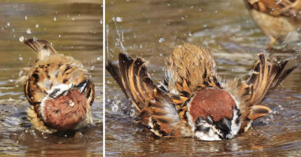 他捕捉到精彩「麻雀出浴過程」甩身狂洗臉 下秒「超呆行為」太可愛❤