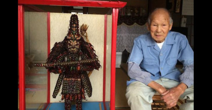 這個完全用昆蟲做出來的武士盔甲我一近看就差點吐了…