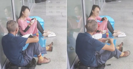 女子坐地上乞討!阿伯「買飯給她吃」 等她吃完「接下來舉動」眾人傻眼