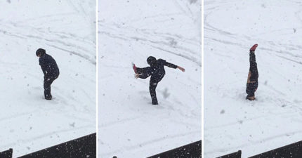 日本被寒冷冬天襲擊,網友拍到男子走路滑倒「帥氣倒栽蔥」的爆笑照片!
