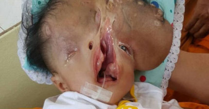 天生「沒有頭骨跟一半臉」的女嬰,在聖誕節期善心和尚給了她感人希望!