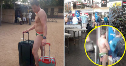 男子挑戰穿三角泳褲能不能上飛機,櫃檯小姐:「你該坐走道的位子…」