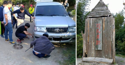 山路上車子爆胎正慌該怎麼辦時,巧遇一群「汽修科」師生出現神救援!