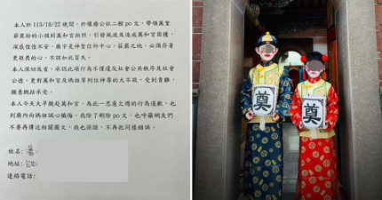 帶金童玉女「提奠字燈籠」媽祖廟拍照 母被炎上向神明懺悔