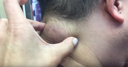 醫師先這樣捏著跟高爾夫球一樣大的痘痘,接著當刀一切開的時候…我暈了…