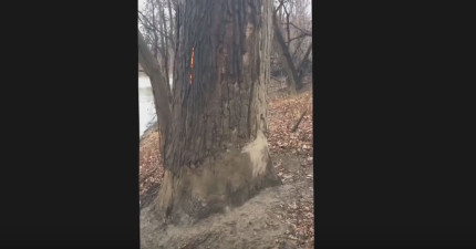 他們走進看到樹裡面有點不對勁,等一往上看到「惡魔之火」就都嚇壞了!