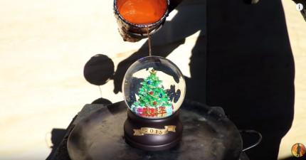 他們把溶掉的銅倒在聖誕雪花球上面,接下來的完美紓壓畫面已經讓我可以溫暖度過冬天了!