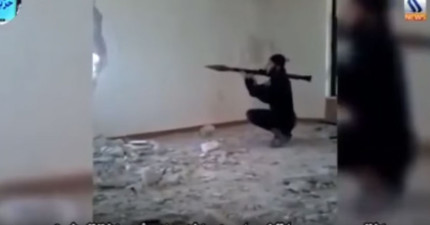 影片中看到ISIS恐怖分子準備要發射火箭炮,但下一秒不小心就把自己給炸掉了。