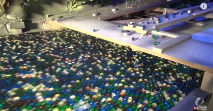 他設計出超大彈珠台讓11000顆滾動,當4:08彈珠一起傾瀉而下時我人生都圓滿了!