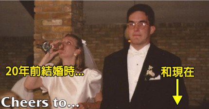 一名網友把他的朋友結婚時和結婚20年的對比照PO上網,兩張照片裡新郎的表情說明了一切。