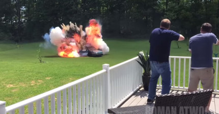 這個人不知道輪胎絕對不能拿刀亂割,結果一割之後…我都被嚇到滑鼠掉地上!