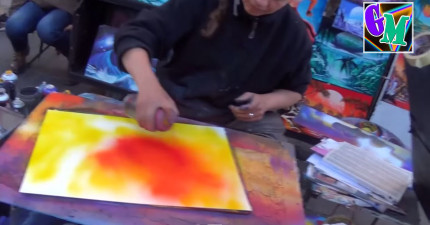 這個人拿著噴漆在紙上亂噴路人都看不出所以來,但看到2:40才發現神作要誕生了!
