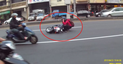 这名红衣女子才刚刚被一台车撞到后,过了2分钟又惨遭到最倒楣的命运。