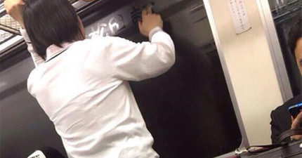有人在電車上拍到一名高中美少女在玻璃上寫字,當她轉過來時我的期待就被扼殺了…