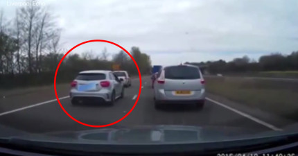 當這台賓士車打算違規躲避塞車時,另一台車殺出來給他上一堂守規矩的課!