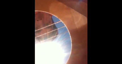 這個男人將他的iPhone4放進吉他裡頭,在撥弦後便發生了不可思議的畫面…