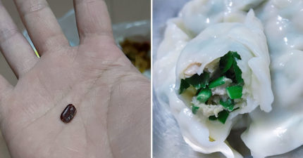 吃韭菜水餃「咬到喀一下」 低頭「見一顆紅豆」嚇到差點吐