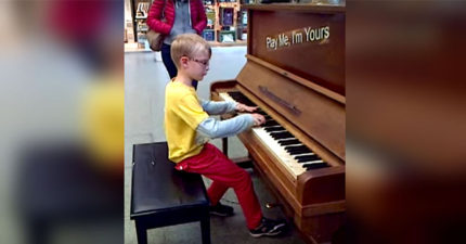 8歲小男看到路邊的鋼琴決定「彈彈看」,「莫札特轉世」抬頭時已經有一群觀眾了…